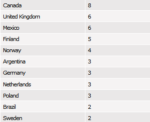 Неофицальную браслетную гонку выиграла команда России (9 побед), вслед за ней расположились: