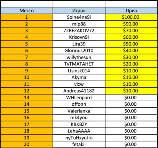 31 Октября завершился 1-й квалифаер серии «Autumn Craze William Hill»! 12 участников уже разделили между собой 500$, а первая 20-ка пропуска на финал турнира, в котором будет разыгран iPhone 6S, сет наушников «Bluetooth Beats Studio Wireless Titan» и билеты на премиальные турниры «The sunday Line-up»!
