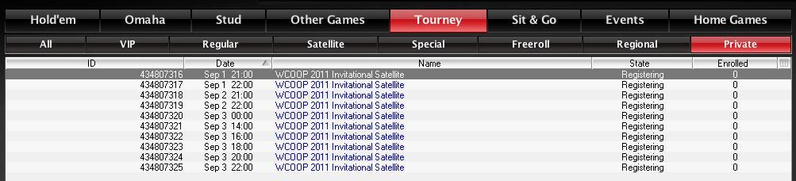 Турниры находятся в лобби Pokerstars: Турниры → Частные → PokerStars $7000 Invitational Series