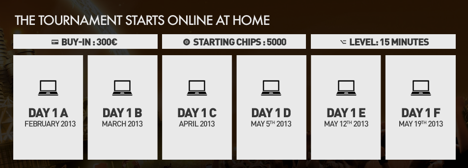 Согласно текущим планам в турнире будет шесть стартовых дней, проходить они будут с февраля по май. Право участия в турнире обойдётся вам в 300 евро, при желании вы можете сделать целых пять ре-энтри и выбрать день, в который вы выступили лучше всего.