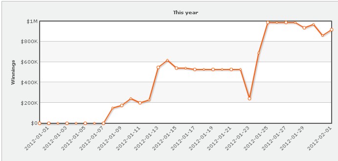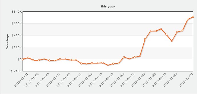 Возмутителем всеобщего спокойствия на следующей недели стал регуляр самых дорогих HU SNG Сандер «Berndsen12» Берндсен, за столами для омахи пот-лимит $50\100 — $100\200, где основным его соперником был Виктор Блом, он заработал $324 000. У Исильдура тем временем дела шли из рук вон плохо, вторая неделя января опустошила его банкролл на $447 000. Самым успешным игроком недели, да и всего месяца оказался некто patpatman из Макао. Кто скрывается за этим псевдонимом неизвестно. Новый герой высоких лимитов, заведший аккаунт на Pokerstars только в этом году, активно играл как в омаху, так и в безлимитный холдем ($200\400). Там он разгромил самого Kanu7, самого успешного игрока в безлимитный холдем на Pokerstars в прошлом году ($828 000)
