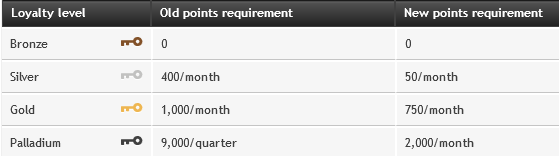 Изменения вступают в силу с первого марта. Количество очков, которое вы получаете за доллар рейка (2 FPP за $1), остаётся прежним.